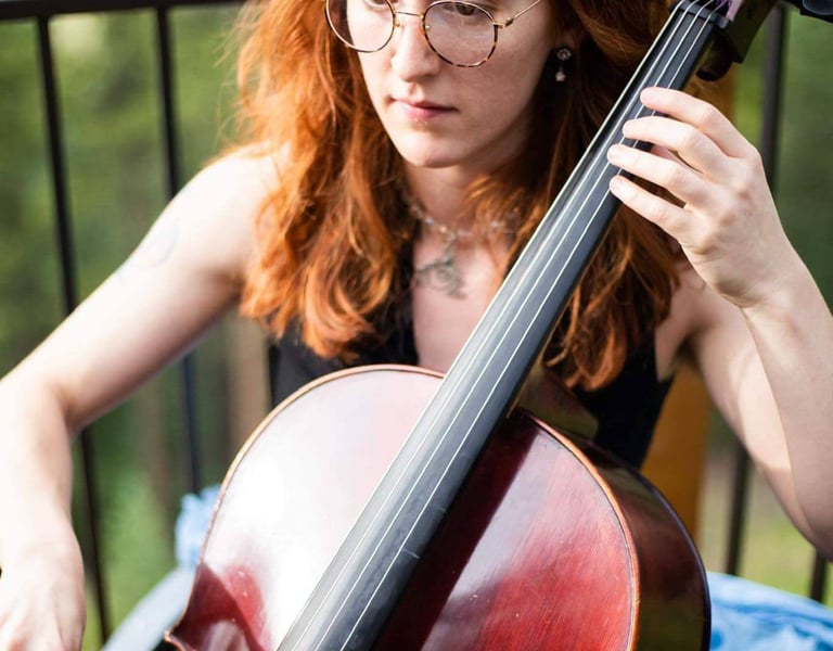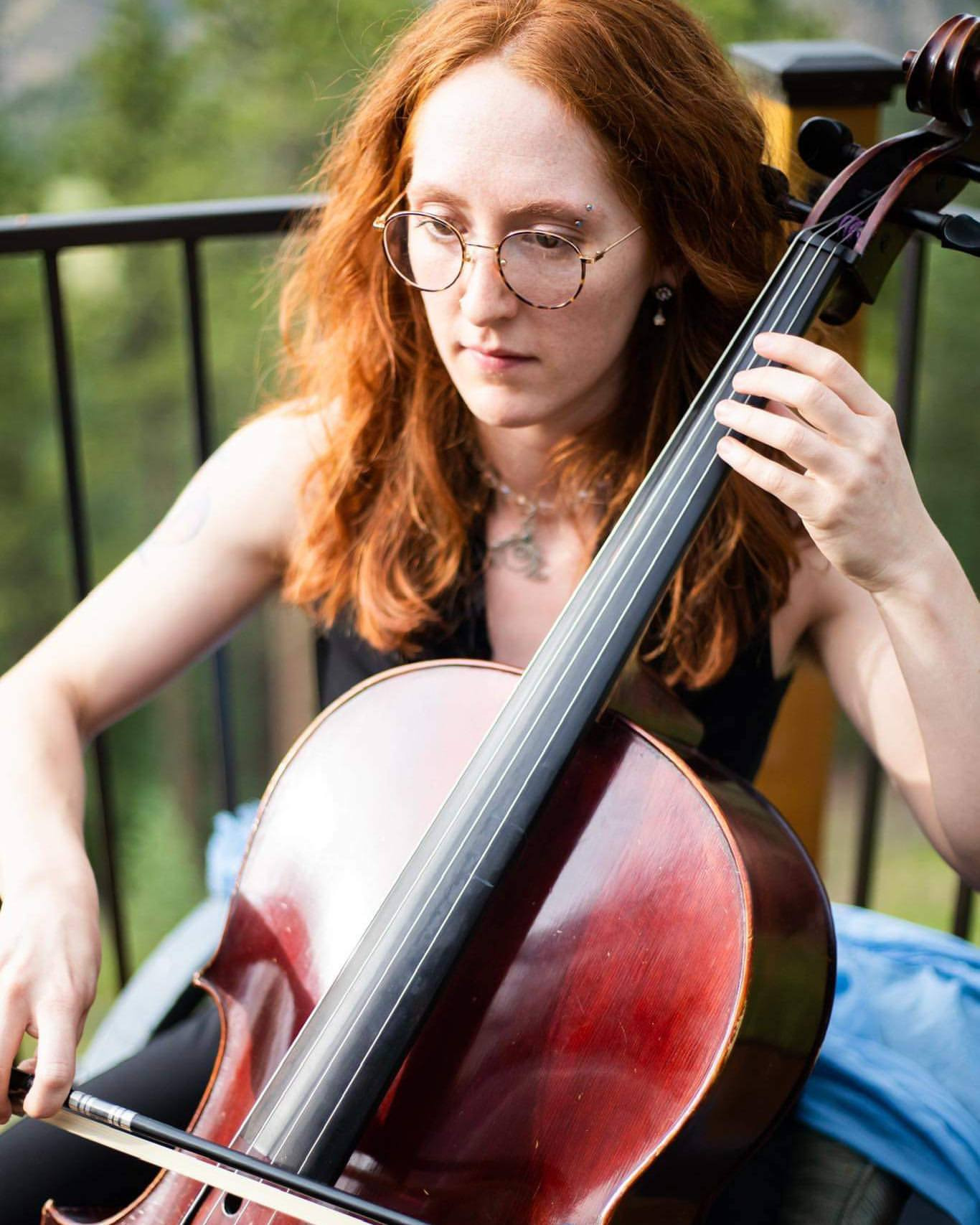 Her primary ongoing projects include a three-act chamber opera planned for Spring 2028, Tansy Wine’s self-titled debut album in Summer 2026, a solo EP of original music, and regular performances throughout the American Southwest as her post-apocalyptic alter ego, “Pipes”. She maintains an active schedule as vocalist, mandolinist, and cellist with multiple ensembles, and twice-monthly performance engagements through the Downtown Denver Partnership. Sofia is also a live-composition teaching artist with the Playground Ensemble, Denver’s premier new music group,